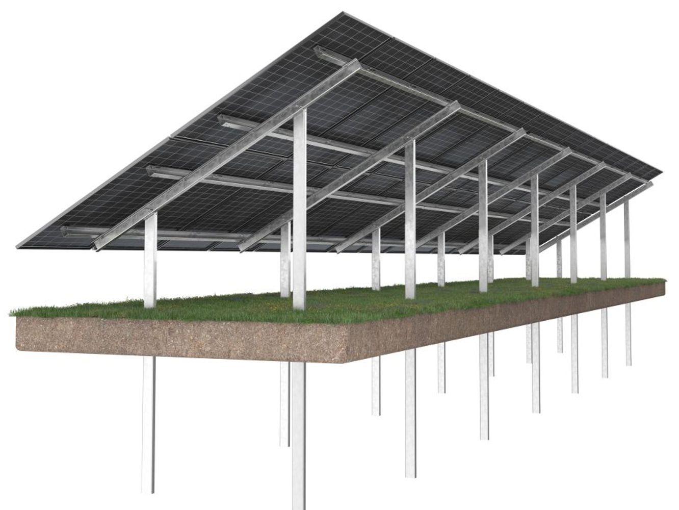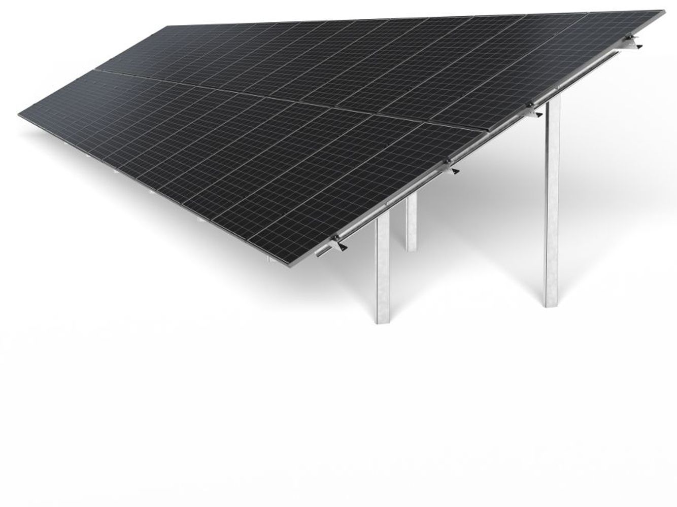The system is equipped with an inverter mounting and an additional constriction for greater stability. It also allows the installation of bifacial thin-film modules.