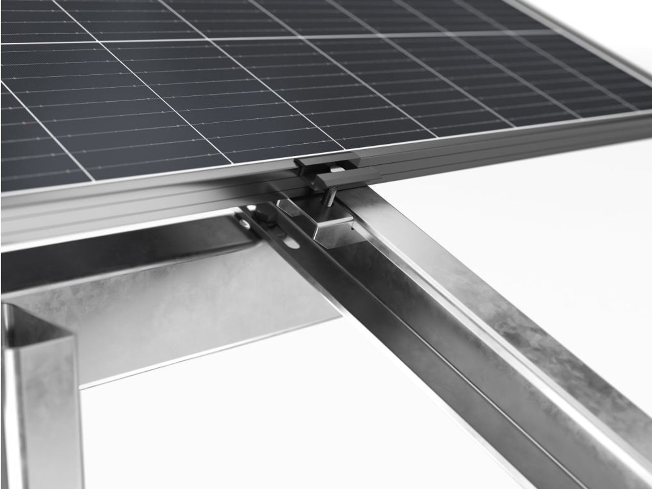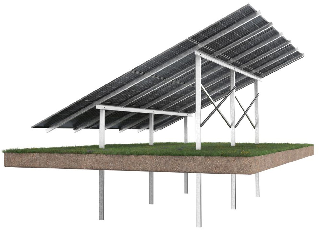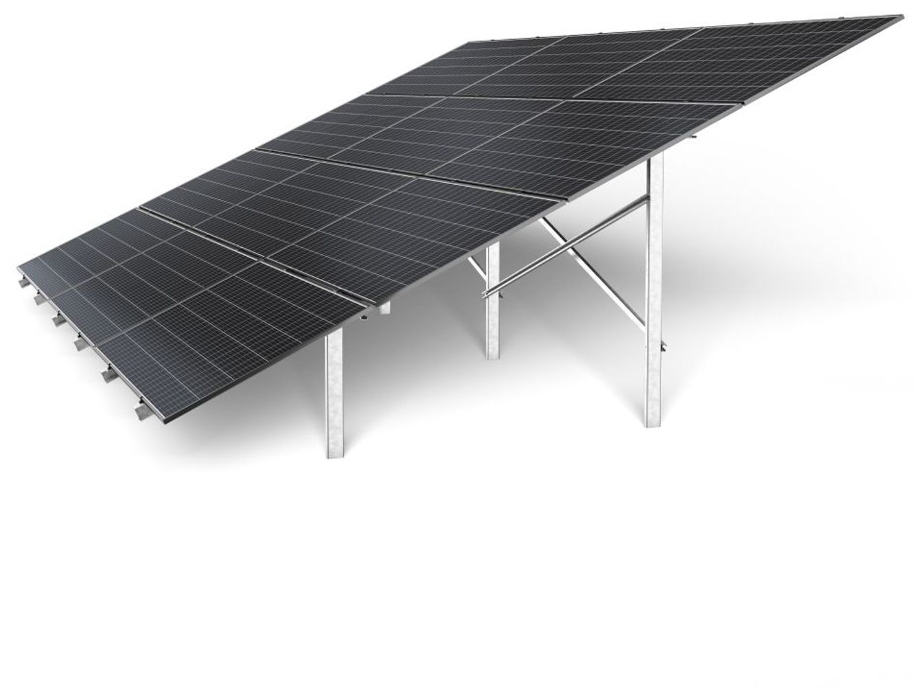 The system is equipped as standard with an inverter mount and additional bracing for greater stability. It also allows double-sided modules to be mounted in a 4-module arrangement horizontally at an angle of 20-35 degrees.